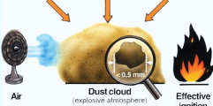 If a static charge grows enough to initiate a “discharge by ionisation” of the surrounding atmosphere, the hot plasma within the discharge channel may ignite the flammable dust cloud. The coincidence of a sensitive dust cloud in air with a discharge of sufficient energy has led to many serious fires and explosions in different industries. German figures suggest that dust explosions are common in German industry, and that 10% of those blasts are caused by static electricity.